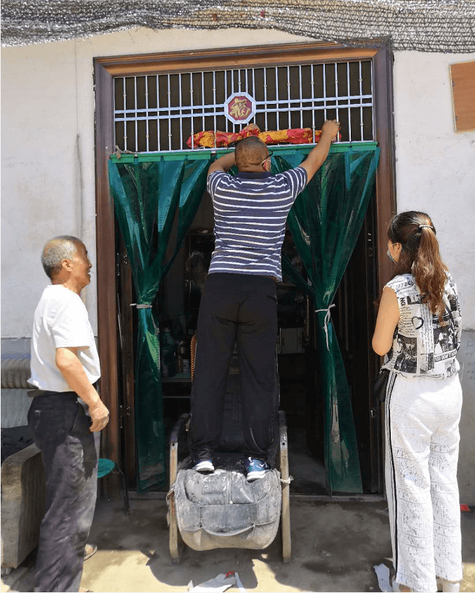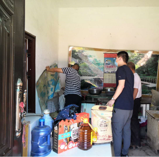 西安水建集團(tuán)副總經(jīng)理吳振江為幫扶對(duì)象擦拭門(mén)上的灰土