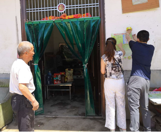 西安水建集團(tuán)工會(huì)主席樊琳杰為幫扶對(duì)象張貼疾病預(yù)防措施